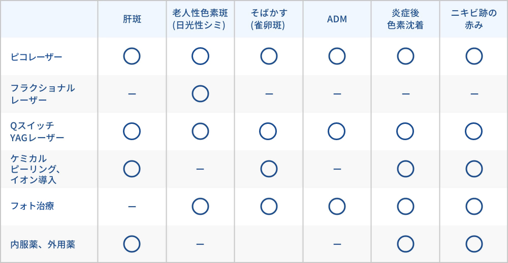 一般的な美容皮膚科などで行われている治療法ではありますが、シミを速やかに治したい、またはシミを根本的に治したい場合は不適応な場合もあります。